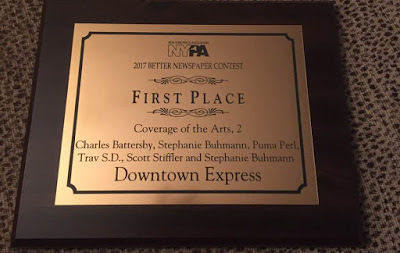 And this is the Plaque! Thanks to Arts Editor Scott Stiffler for his encouragement and critical expertise. Downtown Express and Chelsea Now are two of seven paper published under the umbrella of The Villager.