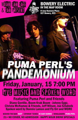 PUMA PERL AND FRIENDS - ANGELLO OLIVIERI ON BASS, RAVEN ON SAX, WALTER STEDING ON VIOLIN, AND SPECIAL GUEST JOE SZTABNIK (NEW YORK JUNK) PLAYING GUITAR.