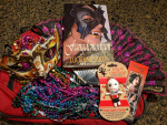 For your viewing pleasure, here’s the prize pack, along with a picture of my Vamplet Vlad modeling the mask, because he couldn’t help himself!
