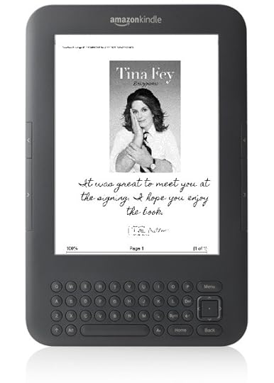 The image below is the entry to the Kindlegraph site. The front page is Tina Fey's 'Bossypants' (great book btw). You can see how the dedications and signatures come out looking. They're great!