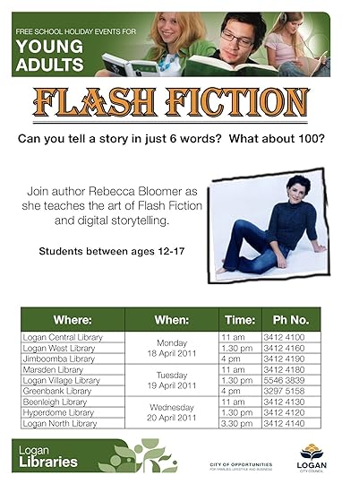 Check out the new poster that lovely librarian, Jo Beazley created for my school holiday workshops. If you've got teens interested in writing and happen to live in the Logan area, be sure to book them in and bring them along.