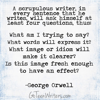 Stephanie here! I'm taking today off from blogging, because I have edits due back on Wednesday, and my focus right now is doing my best to be the scrupulous writer George Orwell describes in this quote about writing: