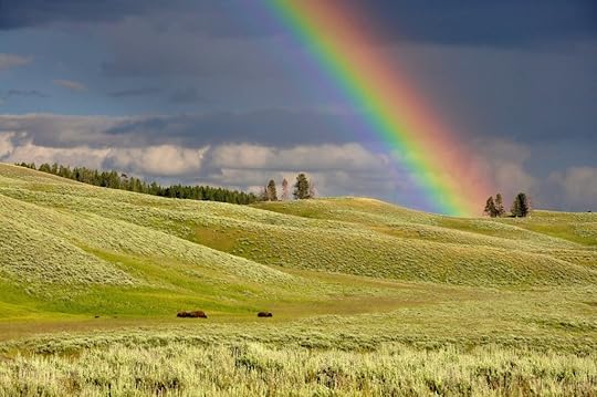 There was a beautiful rainbow stretching over the mountain, when I was on the front porch doing my first writing session this morning. The camera in the phone couldn’t capture it, but I enjoyed watching it until it faded away.