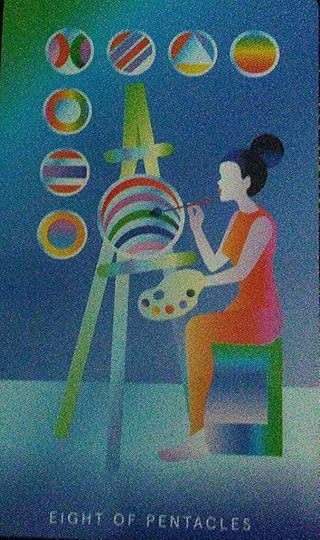 The card above is from the Mystic Mondays Tarot by Grace Duong, which is quickly becoming one of my favorite decks. The above card is the image that first drew me to the deck, via a Twitter pal. The images are sharp and clear; they’re not as perfect in the picture as they are on the deck because the phone in my camera is less than stellar.