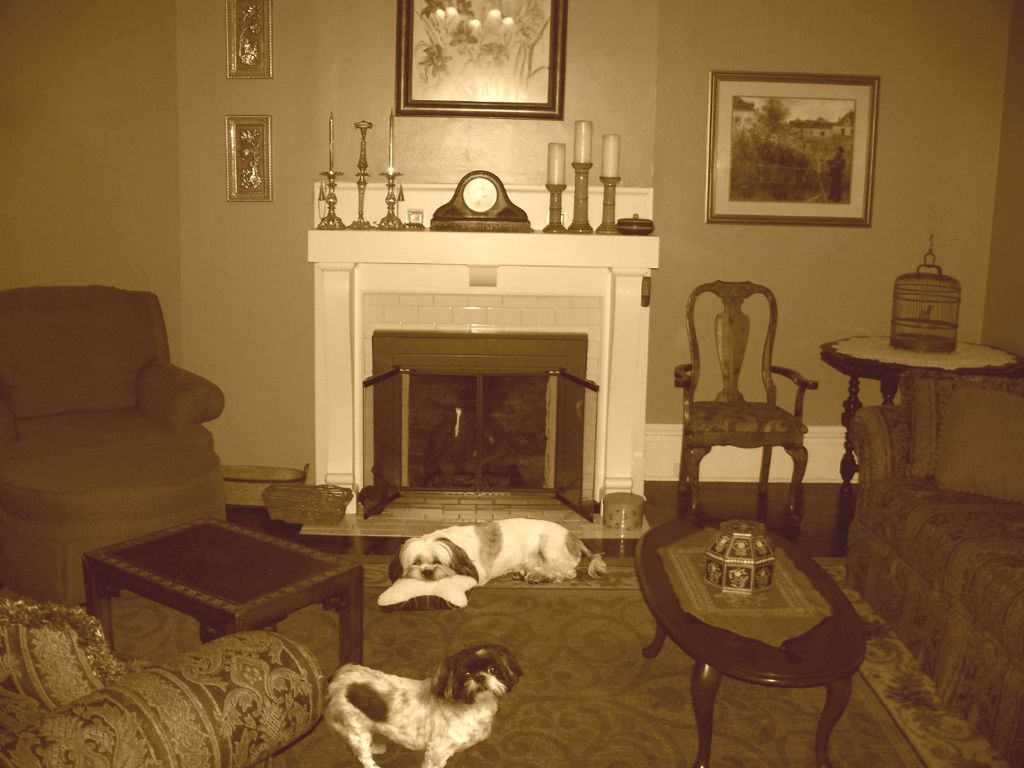 The first of these was June (r), a dog nominated by artist Jason Thompson. I was taken when I saw his picture of his little hunter up a tree. The only real change I had to make was to take out the leash which kept her from running after her heart's desire. It was a fairly easy matter. With Kelsey (l-front) and Sammy (l-rear), two Shih Tzu dogs nominated by Mike and Jenny Meyers, it was a little more complicated. I had two separate photos of the dogs which I needed to combine into a single photo. Since, within the plot, one of the Dogs of S.T.E.A.M. is drawn to their home because it resembles the dog's own Victorian Age, I took the two dogs and put them into a more appropriate setting. To make it look a little more authentic, I turned it into a sepia tone (for the e-book edition only) to give it the appearance of being a daguerreotype. All in all, I think both photos work well in their own ways. The fourth dog was a Gordon Setter named Artemus Gordon (thanks to Lester Doyle), but because his appearance became much more than a cameo, and he was present at some of the events also represented by photos, I decided to forgo the usual photo of him.