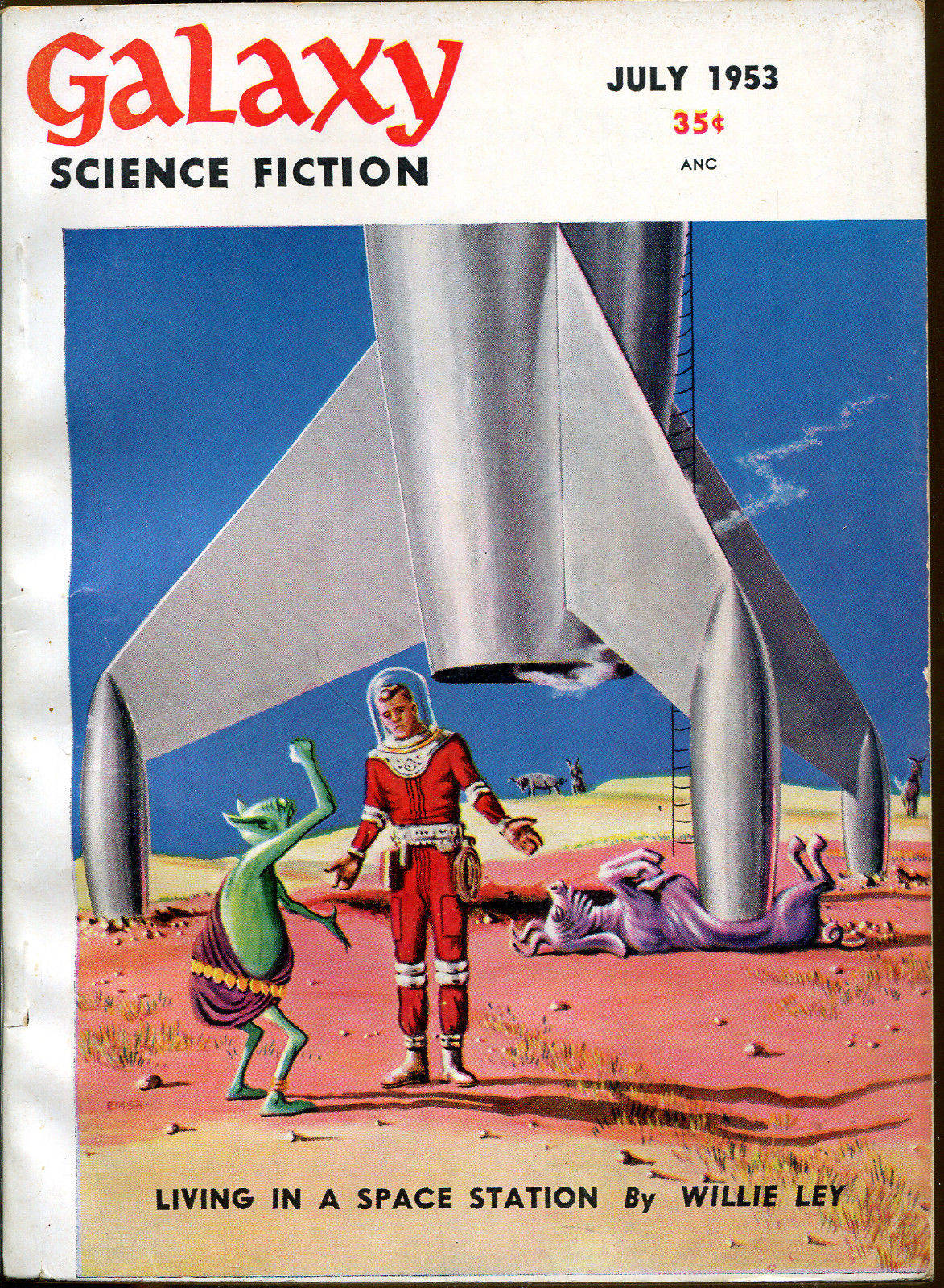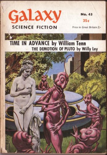 When I was a lad, my parents used to drag me to one thrift store after another. I did not resent these regular outings into the realms of cast-offs and other people's junk. Not at all. While my mom and dad were looking for who-knows-what (I really paid no attention), I was scarfing up paperbacks, comic books and old magazines, most of them for no more than a nickel or a dime--well within my meager budget. I especially liked finding copies of Galaxy, a science fiction magazine that started publishing in 1950, founded by an Italian company looking to break into the burgeoning American SF market. I liked the stories, but I was especially attracted by the covers, which were quite often very humorous...at a time when humor was as rare in science fiction as romance.