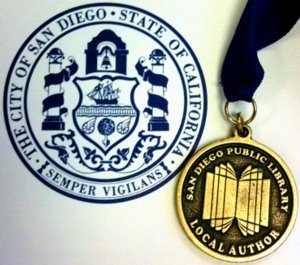 Me and a defenseless sign that could not run awayLast night (1 February 2013), I attended a reception at the San Diego Public Library. The occasion was the 47th Annual Local Authors Exhibit, recognizing those who had had books published (including e-books) during 2012. I was in good company, as there were some 330 authors, representing more than 400 books. The display is open to the public 1 February 2013 - 3 March 2013, and the Library is located at 820 E Street, downtown San Diego.
