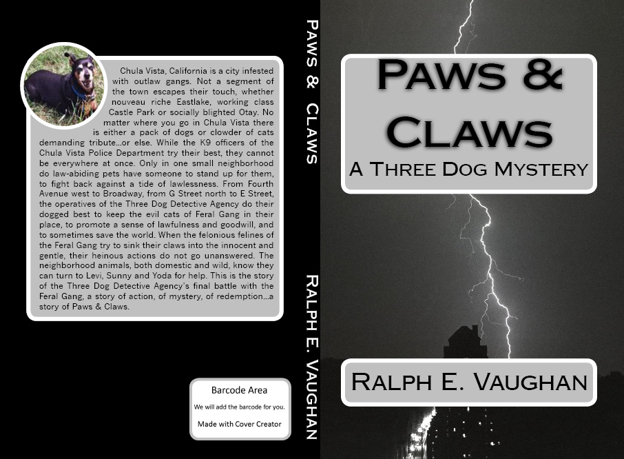 ADDENDUM, 28 NOV 2012: It's difficult to write something like Paws & Claws and not yearn for publication. However, the publishing industry seems to be at a nadir, and then there's the matter of genres. If a story cannot be pigeon holed how to market it. Talking animals? Kidlit? No, not really. Detective? Only if dogs can be detectives to an adult. Fantasy? No, no dragons or chicks in chainmail. It does have religion and redemption, but inspirational niches would be an ill fit indeed. So, what does a optimistic cynic do? Go digital and self publish. I may live to regret it. Or not....regret it, that is. I'll let you know.