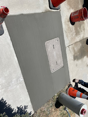 New concrete put in outside as some writing happens inside. No, I didn't pour it!