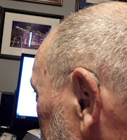 Can you see my hearing aids?My problem? Sad but true, I've experienced permanent hearing loss in my life. And I now wearing hearing aids. I have trouble distinguishing or hearing high-pitched sounds. I'm okay with low and mid-range frequencies so two out of three isn't too bad. According to the National Institute on Aging, one in three people between the ages of 65 and 74 has hearing loss. It's half of those who are 75 or older (my Dad got hearing aids in his 80s). And the NIH notes, "...some people may not want to admit they have trouble hearing."