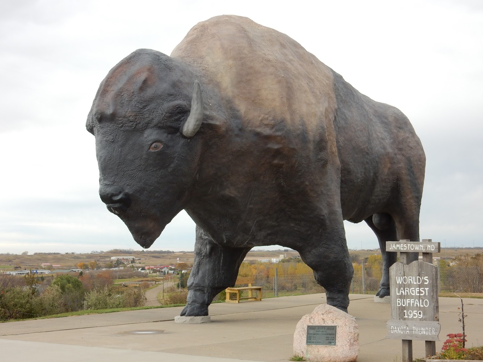 Tyrannosaurus RexRead more about this fabulous place by clicking here. Did I mention that it was free? And yes, we'd like to return and take in other places in this neat city of nearly 120,000 residents, such as Fort Abraham Lincoln State Park and Lewis and Clark Interpretive Center.Our next stop was Jamestown, about 100 miles east of the capital (with an 80 mph speed limit on I-94, the time simply files by), to see the world's largest buffalo monument! Is it any wonder the town of nearly 16,000 residents is known as "The Buffalo City."