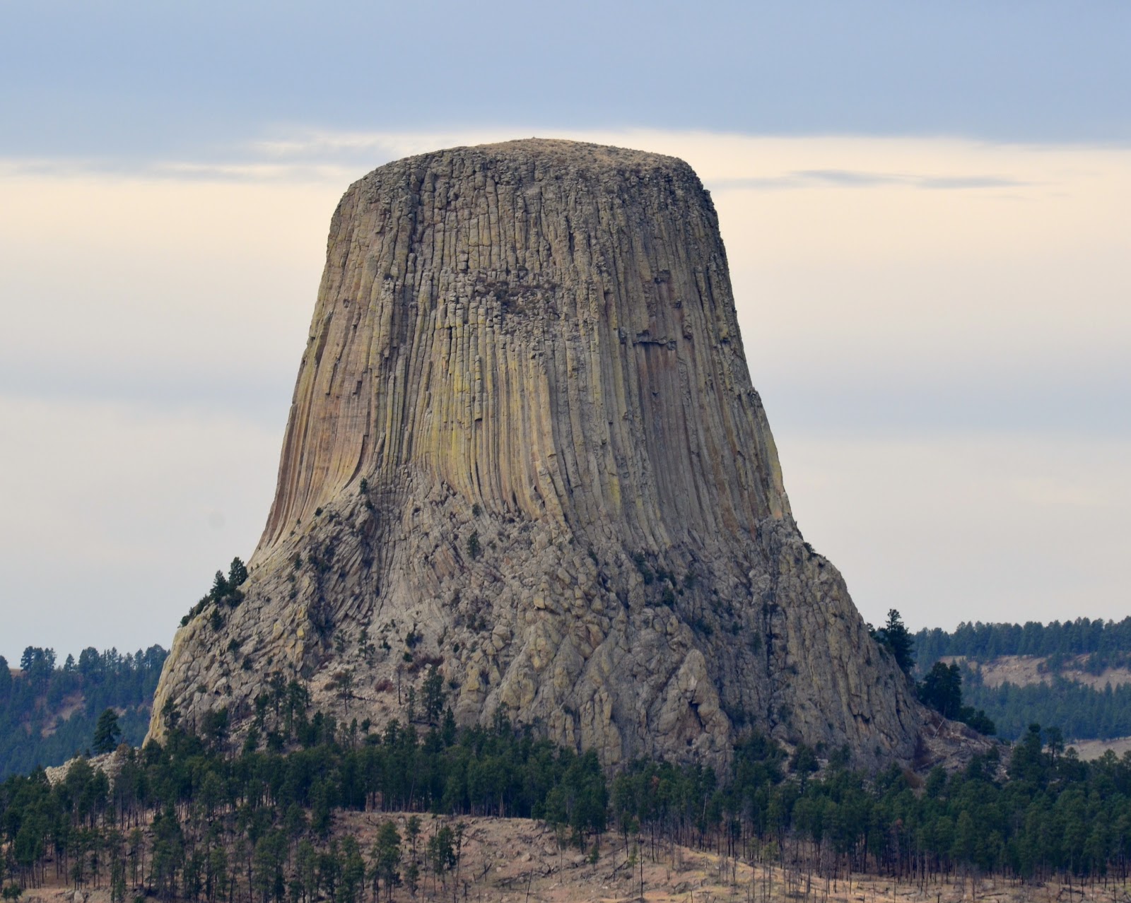 Devils Tower National Monument appears as a giant monolith protruding from the flat prairie as you approach from miles away in northeastern Wyoming.