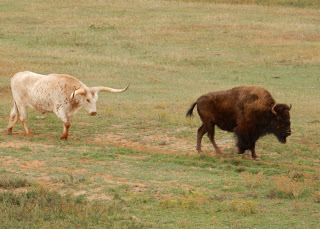 Longhorn and bison outside the parkAnd for others, this is the place that lured humans and aliens in Steven Spielberg's classic movie, "Close Encounters of the Third Kind." We didn't run across any aliens but were warned to be on the lookout for rattlesnakes and black widow spiders. And don't touch or feed those cute black-tailed prairie dogs since they may bite! See more images on my Facebook page by clicking here.