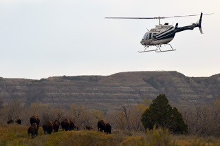 Roundup of bisonOne of the highlights was watching roundup of buffaloes at the North Unit, with park rangers using a helicopter to move the herd. A ranger told me that it's done every four years to trim the population, with the buffaloes later transported to Indian reservations as far away as Oklahoma.