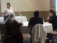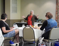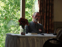 Mary ShortridgeMary Shortridge, a professor at Ashland Community College, led a unique (at least to me) exercise in short-story writing in Saturday's first session. I was paired with Gertrude, and I must say that I thought we came up with a very good story in the 15 minutes we had to put it together. Readers and writers groups as well as schools, libraries should contact Mary for their events.