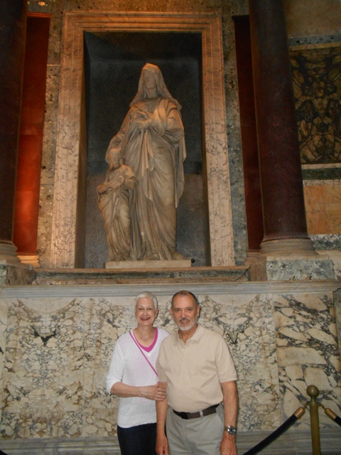 One of the first places our tour group visited was the Pantheon, which dates back to the second century. Originally a pagan shrine, it was consecrated a Christian church about 500 years later. Raphael, a renowned Renaissance painter and architect, is entombed there.
