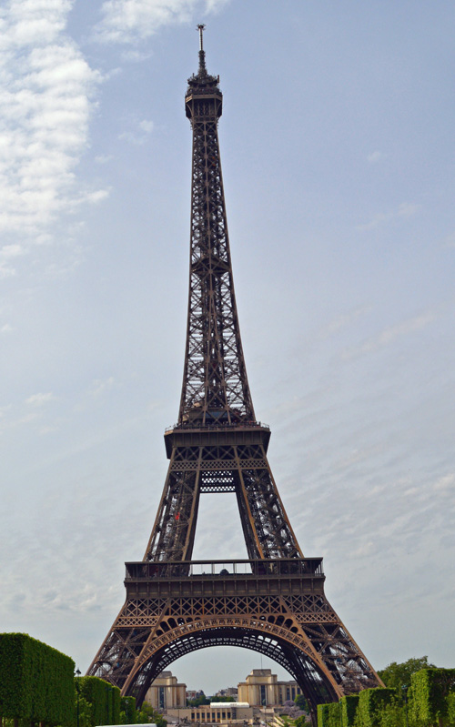 The Eiffel Tower in ParisThe traffic wasn't nearly as bad as we had read except maybe going from Heathrow in London to our hotel on the narrow roads with narrow lanes. And since traffic moves in opposite lanes in England, you see pedestrian warnings throughout the city to look both ways before crossing a street (look right first). I almost got hit by a motor scooter in Roma (the driver came out of nowhere near a historic plaza and he probably thought I did as well). I will say I have no desire to drive in those cities and that's fine since they have excellent public transportation.While in Roma, we encountered a young man who said he was from Kenya (he was wearing a turban and brightly colored shirt) near the Castel Sant'Angelo. He gave us three small hand-carved trinkets -- two turtles and an elephant -- and said he didn't want anything in return. It was simply out of friendship. When I gave him a euro, and then Mary handed him one, he told us he was hungry and wanted more (he didn't appear hungry/starving). We then offered to give him back the wooden trinkets, but he refused, again saying it was out of friendship. We then had a friendly parting of the ways, at least from our viewpoint.