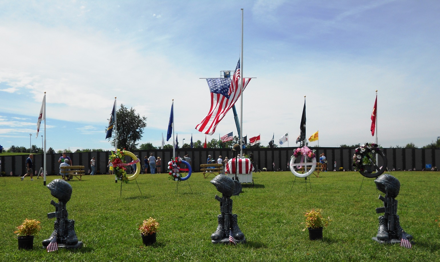 The centerpiece is "The Wall," a replica of the Vietnam Veterans Memorial in Washington. There are 58,272 names inscribed -- listed in chronological order and time of the casualty within each day.