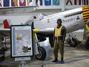 aircraft pavilion, and one of the displays commemorated the Tuskegee Airmen who were the first African-American military aviators in the United States armed forces and served during World War II.