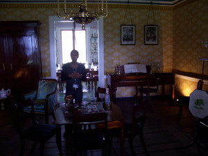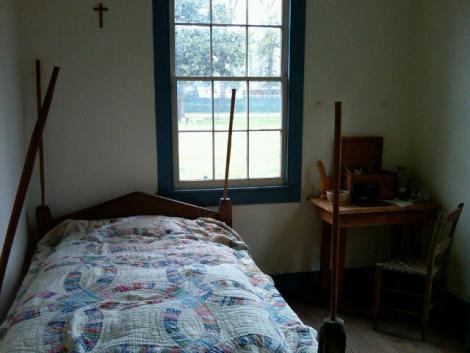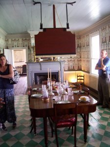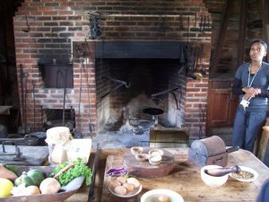 We thoroughly enjoyed the tour and marveled at the cooking processes of the day. fireplace, with a brick oven built into the wall for baking, and the devices, such as a "toaster," a metal frame to hold two pieces of bread that one could turn for toasting on both sides. With no refrigeration and winters not cold enough to collect ice, food was buried in the ground in large crockery olive oil jars from Europe. The pigeonnier housed squab, a delicacy in early America.