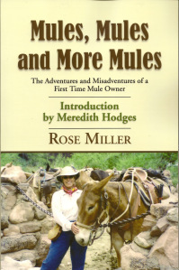 What happens next constitutes the story of "Mules, Mules and More Mules," as Rose searches for the ideal long-eared companion. Because of her bad back, a smooth-gaited mule that would allow her to sit back and enjoy the ride was desired, but everything was not smooth going. Continue along for the trip as she uses her engaging around-the-campfire-story-telling style to introduce her mules: Mirabella, Samson, Maybellene, Ruth Ann, Susie, and Lucinda. You will laugh out loud as she learns the hard way, mules and horses are different, and are not perfect.
