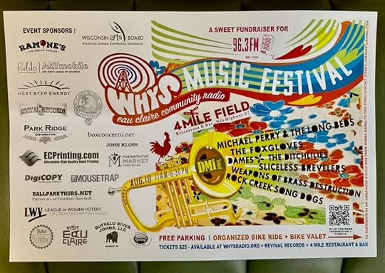 Holey moley, twenty years gone by in a flash, as shown by these two posters! (The band and I are very much looking forward to joining a whole bunch of other bands to play at the WHYS benefit just outside Eau Claire, Wisconsin, August 18, and hope you’ll get your tickets here.)