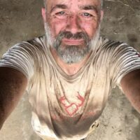 The portrait (sweaty selfie, let’s be real) above was taken in one of Mike’s pole barns after a firewood splitting session. Made sense, then, to use it as the author photo for Forty Acres Deep, a book featuring several pole barn scenes.