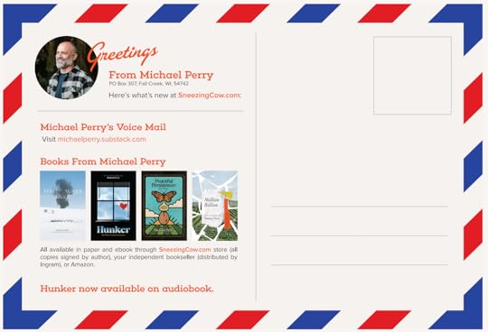 Been hunkered writing. Working to finish two books under contract (Scavengers sequel, book about fathers & daughters). Still a ways to go on both but hammering away. For me, writing is like carving concrete with a spoon. Meanwhile our last four self-published books–Million Billion, Peaceful Persistence, Hunker, and Forty Acres Deep–have outsold our expectations and are keeping our little outfit rolling. Thank you! We use this old-school postcard to update folks. And of course all books (and audio, and T-shirts, and Sneezing Cow can koozies) available here.