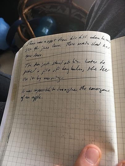 Scribbles in a notebook, 2019. Working out the novella Forty Acres Deep.