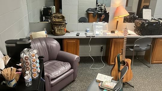 Pre-show still life. Lots of un-hunkered laughter and stories and conversation with folks in Oconomowoc last night, looking forward to another show tonight (sold out, sorry not sorry), then taking it to The Historic Temple Theatre in Viroqua next week. Also a great opportunity to re-up this:“I wish I’d have known you were in town!”In light of social media sketchiness and the struggles faced by local media outlets, and in light of the notes we get from folks who find out Mike or the band was in town after the mighty 2002 Toyota van leaves town, we respectfully renew our request that you* consider joining our old-fashioned mailing list. Here we explain everything in plain language: https://sneezingcow.com/mailinglist/*If you’re one of the thousands (!) already signed up, thank you.The post Backstage appeared first on SneezingCow.com.