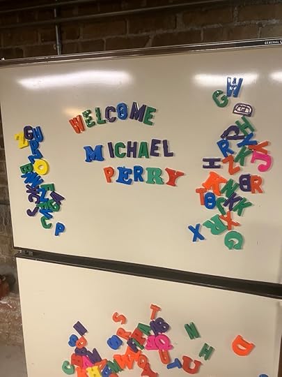 The fridge is cold, but the welcome is warm. A lovely touch waiting for us backstage at the Temple Theatre in Viroqua.