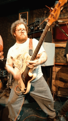 When Chris Ramey isn't putting the twang in the Long Beds, he's turning it up to 11 with the Jaggernauts. Fun photos here (Chris is in red shirt) and how about Noel on that bass:
