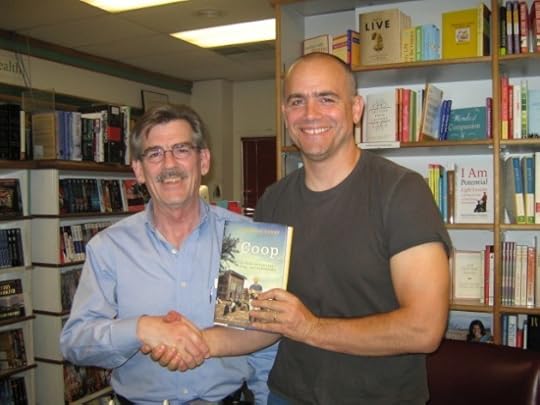 Neat how a photograph can send me backward…this one from Bob taken at a signing in Iowa City brings back memories of a warm evening, a great cup of drip coffee that morning at the Java House, and sitting on an I-80 on-ramp with the window open to the sound of birds and blowing grasses as I did a phone interview with a radio station back home. So thanks, Bob: