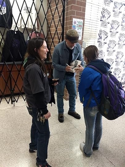 I recently spoke at a school event open to the public. Signed a lotta books after. The young reader with the backpack is in middle school. The other young lady is in her 90s. This is why you put in the hours and the miles and the rewrites and the revisions and the not-enough-sleep. To experience the joy and honor of knowing two people–two versions of youth–are giving your work a slice of time from their life. I am grateful for their gift.