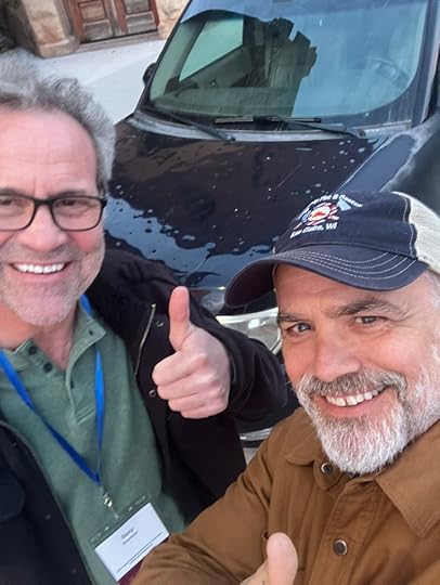 Almost 60 and still looking like the kindergartner showing off his three-legged cat drawing.Me and Tony at a gig in South Dakota taking a selfie next to a hail-riddled Ford Flex for our ongoing “toaster” collection (some will understand).