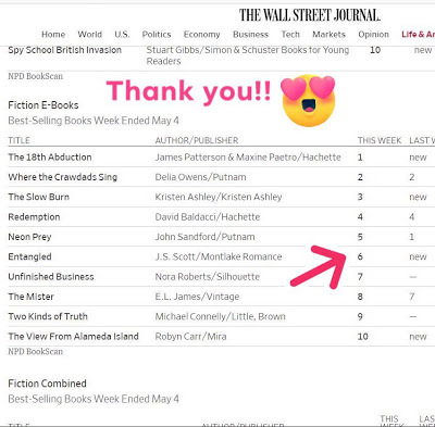Thank you to all for making my Montlake release, Entangled, a Wall Street Journal bestseller this week. Entangled is #6 on their bestseller list!! <3 <3 <3 <3