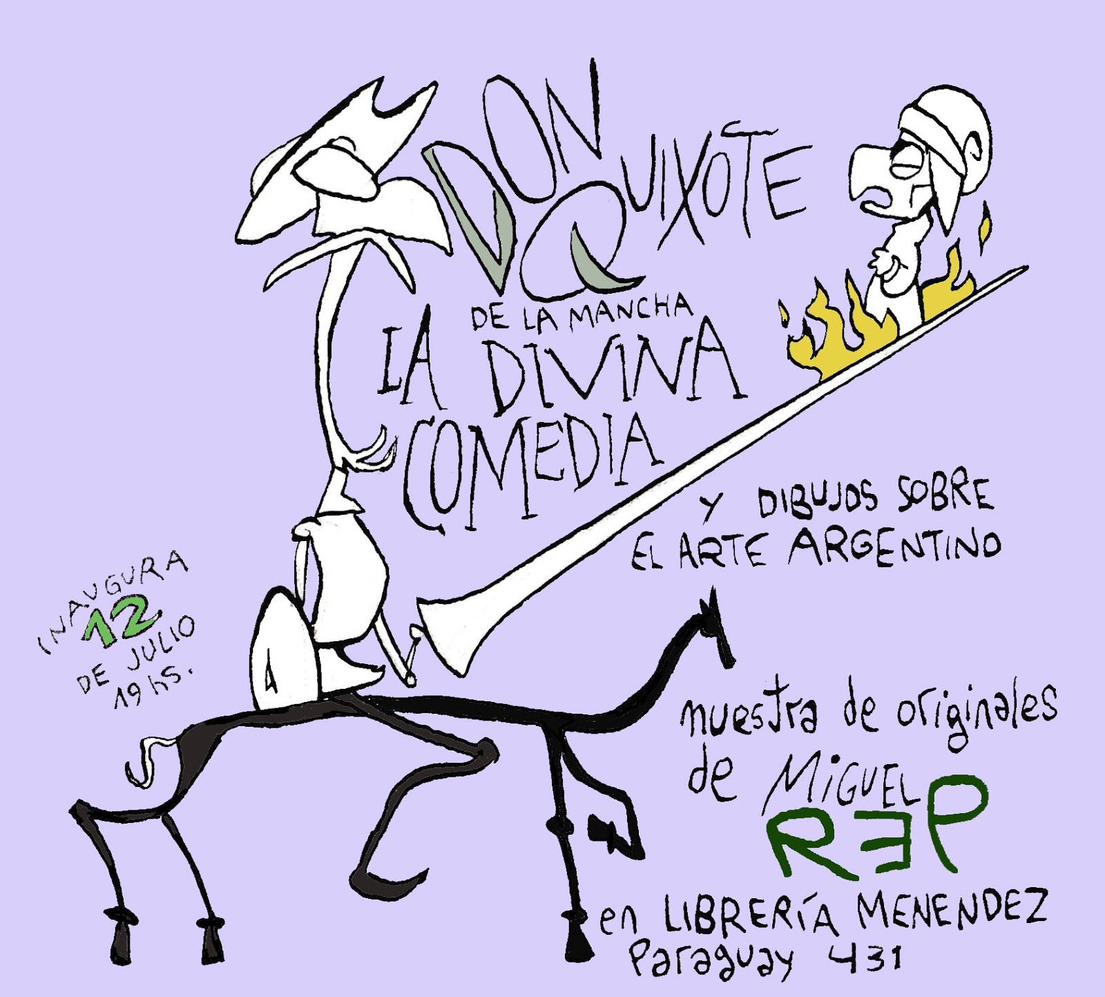 HOY INAUGURACION DE MUESTRA DE ORIGINALES DEL QUIJOTE, LA DIVINA Y BELLAS ARTES ARGENTINAS, EN LIBRERIA MENENDEZ, PARAGUAY 431, A LAS 19 HS. LOS ESPERAMOS PARA EL BRINDIS