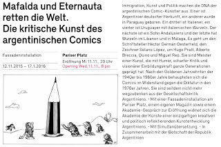 El 11 de noviembre, y durante 2 meses y medio, la Akademia de las Artes de Berlìn proyectarà, a mts. de la Puerta de Brandeburgo, 7 horas diarias de comics polìticos argentinos, curada por Jeanine Meerapfel, con la presencia y colaboraciòn integral de Miguel Rep.