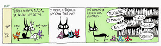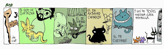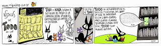 Con una línea inconfundible que garabatea entre piernas largas y una mirada de ojos profundos, a veces negros, otros azules, Cortázar va entre saltos por las páginas del nuevo libro de Rep, la materialización de un mural que el humorista gráfico dibujó en vivo en el Salón del Libro de París, del que Argentina participó como país invitado de honor. Para sorpresa del público francés, Rep desafió al tiempo y lo transformó en medida accidentada, en homenaje y sintonía con su protagonista. "La biografía de Julio Florencio merece ese desacato, esa emergencia rayuelística, sentí un alborozo en el estómago cuando se me ocurrió lo del orden aleatorio", dice el dibujante a Télam. "Me encerré durante el verano a trabajar una biografía seca, probada, sintética de Cortázar y decidí no respetar la línea de tiempo habitual que se estilan en las biografías, metí en una coctelera todos esos años, jugué aleatoriamente", explica el artista sobre este recorrido de dibujos cortazarianos, publicado por Planeta. Y con esa misma impronta, cuenta, "hice 35 bollitos de papel con cada año, los puse en una canasta y los fui sacando: juego, azar, la mano de un cronopio". Y ahí, en la canasta, "estaba Cortázar, quien, fumando y sonriendo, me fue dando cada bollito según su antojo. Hay que subvertir, Cortázar hacía eso, era un lúdico y un subversivo, desde la belleza, claro" De esa historia desorganizada, Rep, dibujante de primera hora del diario Página/12, eligió contar 35 de los 69 años de la vida del escritor: "¿Son muchos para una vida, no? Eso habla de una existencia intensa, años de hechos claves, de libros, de juegos cruciales, que elegí contar sin ningún lirismo, ni ampulosidad literaria. Más bien, casi informativo, seco, periodístico". "Mi vuelo -refuerza- está en los dibujos que acompañan esas descripciones, ahí estoy yo con el maestro", y sí, ahí aparece Rep con su trazo tan propio contándolo a Cortázar, largo y de traje pisando con un pie la tierra y con el otro el éxito de una rayuela dibujada para el año 1963, fecha en que aparece por primera vez publicada la novela que rompió esquemas en la literatura hispanoamericana. O en 1918 un Cortázar pequeño de ojos azules enormes, que llega a Buenos Aires con cuatro años; el humo que escapa de su boca en 1956 cuando ese niño ya es un escritor reconocido, con Final del juego publicado en México, mientras escribe la novela Los premios y visita la Argentina en agosto hasta noviembre; o reposando en la tumba junto a su amor, Carol Dunlop. Y en todos esos cuadros el escritor ilustrado estremece con su mirada clavada y profunda, escoltada por un entrecejo remarcado, con unos ojos -de los que el dibujante hizo gala y así define- "tremendos, separadísimos, vacunos, honestos, faros, radares, impertérritos, claros que como dibujante agradezco. Una hermosa mirada de cronopio, de bebé, de sabio, de valiente". Ese ida y vuelta por destellos biográficos del escritor -arranca en 1969 y termina en 1947, con el signo del juego como motor- fue guiado por "todos sus libros, aun los que no salieron. Sus amores, por lo menos tres mujeres, sus viajes, su itinerario político, y su graciosa figura saltando de uno a otro casillero rayuelístico de la vida". Al Rep lector le gustó mucho Bestiario y dice que "sus cuentos son inolvidables", pero hay algo que también le atrajo mucho siempre, su vida, "niño, maestro, intelectual, gorilón, exiliado, nostálgico de estas tierras, amoroso, respetuoso de sus mujeres, compañero, idealista y generoso. La suya es la prosa de un buen tipo, más allá de sus maestrías", desliza. Y es a la esencia cortazariana a la que apunta con éstos dibujos sencillos, emotivos, suspicaces, que incluso hasta coquetean con una ingenuidad casi infantil, en cada una de las páginas de este libro, una biografía que espera "invite a los lectores a volver a don Julio Florencio de una manera más próxima, como de un niño que dibujó a un gran niño..." "Y que puede ablandar el procerato que muchas veces instala la academia, las efemérides o las diatribas que quieren voltear a un gran escritor desde prejuicios que leen populismo ahí donde hay amor por la escritura para el lector universal, no para pocos. Cortázar es un argentino hermoso, luminoso, y nos quiso mucho", dice. Para el dibujante, Cortázar "siempre fue un niño, la política lo hizo salir de esa comodidad infantil, y sus audacias fueron primeramente literarias y luego poner el cuerpo para su ideología". "Es un niño - completa y concluye- que pegó un estirón increíble, que no envejeció, que escribió lo que quiso y en argentino. Nunca belga, nunca francés, siempre porteño. Es nuestro, indudablemente, aunque haya nacido allá y sus huesitos estén allá". http://www.telam.com.ar/notas/201408/...