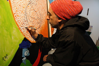 HACIENDO LOS MURALES PARA LA BIENAL DE ARQUITECTURA DE VENECIA.