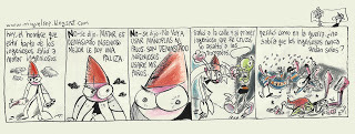 Firma d`autore está dividida en diez partes. Habrá lugar para obras inéditas, una zona dedicada a temas relacionados con la música, otra a las Postales y hasta una de regreso de personajes entrañables, como El Caramonchón. El hombre intenta desglosar tanta exuberancia: “La semana que viene van a publicarse historietas raras que salieron en revistas como Puertitas o Veintitrés. Son universos muy particulares que han ido desarrollándose en los últimos quince años y que van a ocupar dos capítulos”.