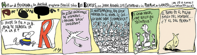 La otra fotito es de cuando salimos presentar nuestros libros de De La Flor. Era del 62, y dejó muchas páginas dibujadas, muy parecidas a él, a Peni, a Pedro Penizzotto.