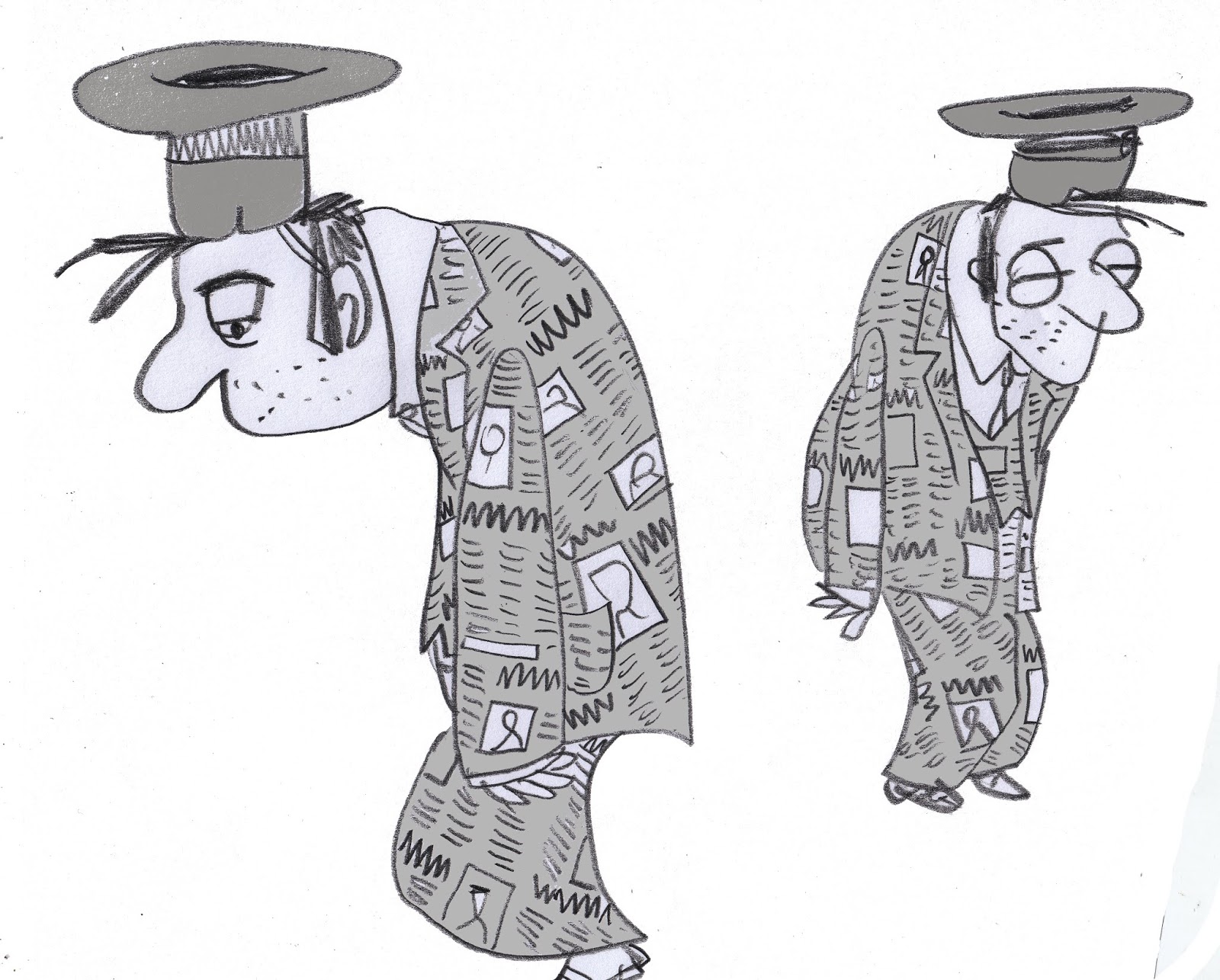 Bocetos para vestuarios de los 4 personajes de la obra Buena Presencia, en Teatro La Comedia