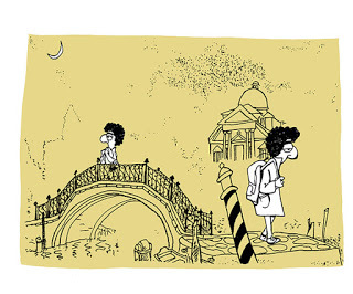Recién llego a Venecia. Es la parte oscura de la madrugada. En Informes de la Stazione Ferroviaria me indican que, para ir al Albergue para la Juventud , tengo que cruzar con el vapporetto. Pero el lanchón, en su parada, se mece solo, sin nadie alrededor. Nadie hace cola, nadie expende boletos, nadie pretende manejar la nave. Es muy temprano, y hace un frío de calarse. Mi pulóver de anchas rayas grises y blancas no alcanza a protegerme del rocío. Camino, y le pego un besazo a la petaca. Cansado y todo, tras un viajecito desde Viena hasta aquí, recibo las primeras impresiones de esas callecitas sin autos. Olores raros, gatos, ventanas cerradas, laberintos donde choco mi pesada mochila con esqueleto de aluminio. Primeros ruidos de Venecia, pisadas de las espaldas que van adelante y doblan y se pierden, agradable fragancia de una panadería. Amanece, como quien dice, clarea, y me siento encima de la mochila, bajo una arcada, en un final de calle que da al agua, y observo el golpetear de ese cacho de mar urbano en la veredita. Soy un fantasma en este paisaje medieval. Las luces cambian, se acerca la hora de la salida del vapor. Voy para allá. De golpe me topo con una amplitud. La Plaza de San Marcos, esa postal tan conocida de antemano. Allá está el mar verde. De pronto baja una neblina, y veo las primeras gaviotas. Qué lejos estoy de casa. Un marinero está leyendo un Corriere. En la portada alcanzo a leer sobre la muerte de Rock Hudson. Un fantasma recorre Europa, lleno de sangre contaminada, justo la primera vez que se me ocurre venir a este continente. Le pego otro chupón a la ginebra. Veo algunas lanchas en el Canal, entonces enfilo hacia la parada. Cada vez más gente, de la laburante, y ningún turista. Me guardo las ganas de tomar un café humeante y oloroso para cuando llegue a la Giudecca. Estoy en el batello de la linea 82,el vaivén me salpica la cara. Detrás del ruido del motor resuenan los chillidos de algunas aves. Hay palos clavados en el agua, y bestias aladas marinas descansan ahí, paradas, atentas. Allá aparece una curva, y tras ella, la Giudecca. Estamos cruzando el Canal, y ya esbozos de sol rebotan en el dorado de algunas iglesias orilleras. El agua está cambiando de verdes. Un anciano italiano con gorra negra mastica un emparedado. Emparedado, ¿cómo me vino tremenda palabra de historieta? Tengo una nostalgia que no es mía, y siento que estoy viajando como llevando a otros que quedaron en mi tierra y no pueden hacerlo. Quizás sea por la despedida que varios colegas me hicieron en una casa de la avenida Nazca: en sus rostros veía las ganas de emprender la aventura por el viejo continente, el sueño argentino de volver al origen. Pero yo no estoy en mi origen, no tengo sangre tana. Pero sí la cultura, es increíble lo familiar que siento este idioma y estos ademanes casi árabes. Desde que crucé la frontera austríaca y sentí el griterío del norte de Italia, me relajé. Atrás quedaron los periplos españoles, franceses, belgas, holandeses, daneses, suecos, alemanes y vieneses que gasté en este mes y medio. Ahora me siento como en el conventillo de Boedo, oyendo el griterío de doña Carmela y Don Salvador. Estacionamos en la Chiessa del Gesuati, atan la soga, y me dan una mano para pasar al muelle. La Giudecca. Miro el mapa y encuentro que el Albergue está en esta misma calle costanera. Hacia allá voy. Necesito el cafecito y un colchón. Llego y, oh, está cerrado para los nuevos, hasta las 11. Y es muy temprano aún. Me invitan a volver a la calle, y a esperar. Deambulo por la Giudecca. Es bien distinta a la Venecia que está enfrente. Aquí se vive. Su nombre deriva de que en esta isla vivían los judíos. Veo que hay una obra de succión del agua del Canal, cercada con chapas. Por un agujero descubro el barro gris verdoso, denso, y no muy profundo, la profundidad exacta en la orilla. Si vaciaran todo el agua del Canal veríamos este barrial histórico, y algunos de sus misterios en su fondo. La cosa es que el sol ya está acá arriba, y tengo hambre. Me compro unos panes enormes, y manteca. Me siento en una grada frente al mar. Una gaviota huele mi hogaza, y se para en uno de esos palos que salen del agua. Unto el pan. Estudio al bicho. Es muy grande, y temible. Con ese pico te puede sacar el ojo. No mira hacia el agua. Mira el pan. Grazna de vez en cuando. Varios panes con manteca deglutidos después, le tiro migas. Se queda un buen rato conmigo, y luego vuela hacia algo más consistente. Yo también necesitaría un buen pescado para acompañar el pan, maldita gaviota. Estoy hace un rato aquí, ya es cerca de las 11. Me saqué un montón de bolitas de lana del pulóver, me sacudí las migas. Preparo la mochila para ir al Albergo. Me estoy por levantar, y ahí lo veo. ¿Será él? Salgo corriendo hasta la puerta donde desapareció su cuerpazo. Me detiene un gigantón con anteojos de sol, en la entrada. El lugar se llama Harry`s Dolci, y es un restaurante paquete. El urso me pregunta quién soy, qué quiero. Es normal: soy un peludo mal trazado, con ropa de mochilero, indigno de entrar en ese reducto. Le grito, para que aquel que entró escuche –¡Es Pratt! ¡Hugo Pratt! Y Hugo emerge, preguntándome – Eh ¿qui sei? -¡Soy un dibujante argentino, Pratt! ¡Soy dibujante, y estuve con usted en Córdoba, en el 79! Hay dos referentes mundiales de Venecia. Uno es Fellini, el otro, está frente a mí. Llegué hace un rato nomás a esta mítica ciudad, con el recuerdo permanente de todas las historietas de Corto Maltés que leí, imaginándome a Pratt saliendo de esta ciudad tras la guerra, habiendo dibujado L´Asso di Picche, para desembarcar en Buenos Aires y encontrar su madurez y el inicio de su mito en aquel lejano y entrañable Sur que le dio su primera fama y estilo. Si me dicen Venecia digo Pratt. Y ahí está, en mi primera mañana, antes siquiera de alojarme en su piso flotante. Y eso que es grande, Venecia. Y tiene miles de recovecos.