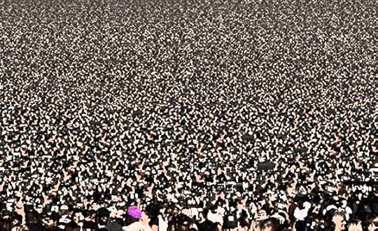 Door chimes morphed into Kraftwerk-esque electronica, underpinned by a pulsing bass and a stick hitting the edge of a snare. Figures walked out of the glowing walls, in perfect time with the music. Two, maybe three dozen, all males, all different ages. A few of them looked similar to my grunge wearing guide. No, they didn’t look similar - they were exact replicas. I scanned the room - a group of kids with short haircuts, more teens next to them, and then a group of twenty-year olds...