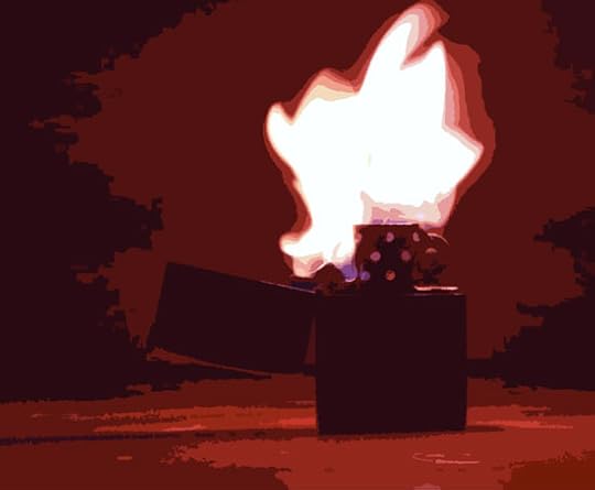 I clacked open my Zippo and held it under the bent coffee spoon. I watched the thin blue flame dance, not thinking of anything, just following the reflections and the metal turning colours. Did I have the guts to put the hot spoon to the barely scabbed over gash that grinned at me like it was about to break wide open and gush red ants – I was going to cauterize the mother.