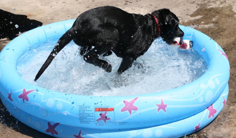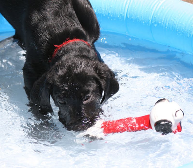 What do you get when you mix a black Labrador, water, kiddie pool, and squeaky toys....? Priceless fun!!!!