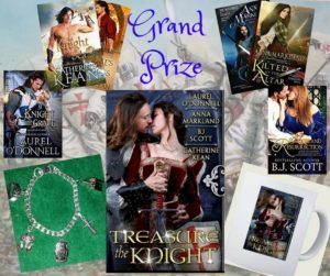 A Templar Conspiracy? We’ve overcome the conspiracy that marred the release of our set, Treasure the Knight …for now! To celebrate, we have a wonderful Rafflecopter setup for you. You could win your own treasure – a mug with the stunning cover of Treasure the Knight on it, a beautiful Templar charm bracelet, a print copy of Kilted at the Altar and 6 ebooks! Be sure to spread the word.