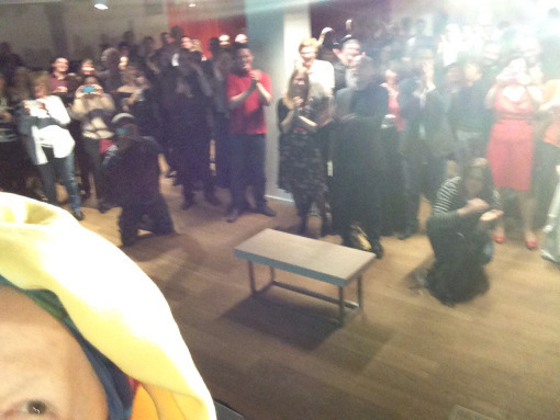 The venue was event-space at the new Foyle’s Book Shop. It was a stand around with drinks type of reception but Foyle’s was kind enough to supply Chris and me with chairs. I think I had to walk twenty-five feet or so to the stage and it was a hike. Fortunately the chairs were those high bar-stool type things so I didn’t have a dizzy episode when I got up. I kept it short, although I did take a few seconds for some “Me and…” shots, as you can see below.
