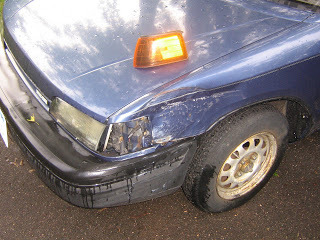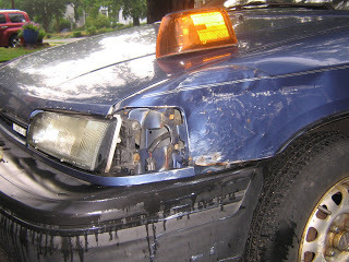 The repair $$ was graciously forked over by Marci, the lady with the mammoth SUV. (She didn't even notice the crap car as she backed out of the parking space. It's just that kind of car---or rather, they are just those kinds of cars.)